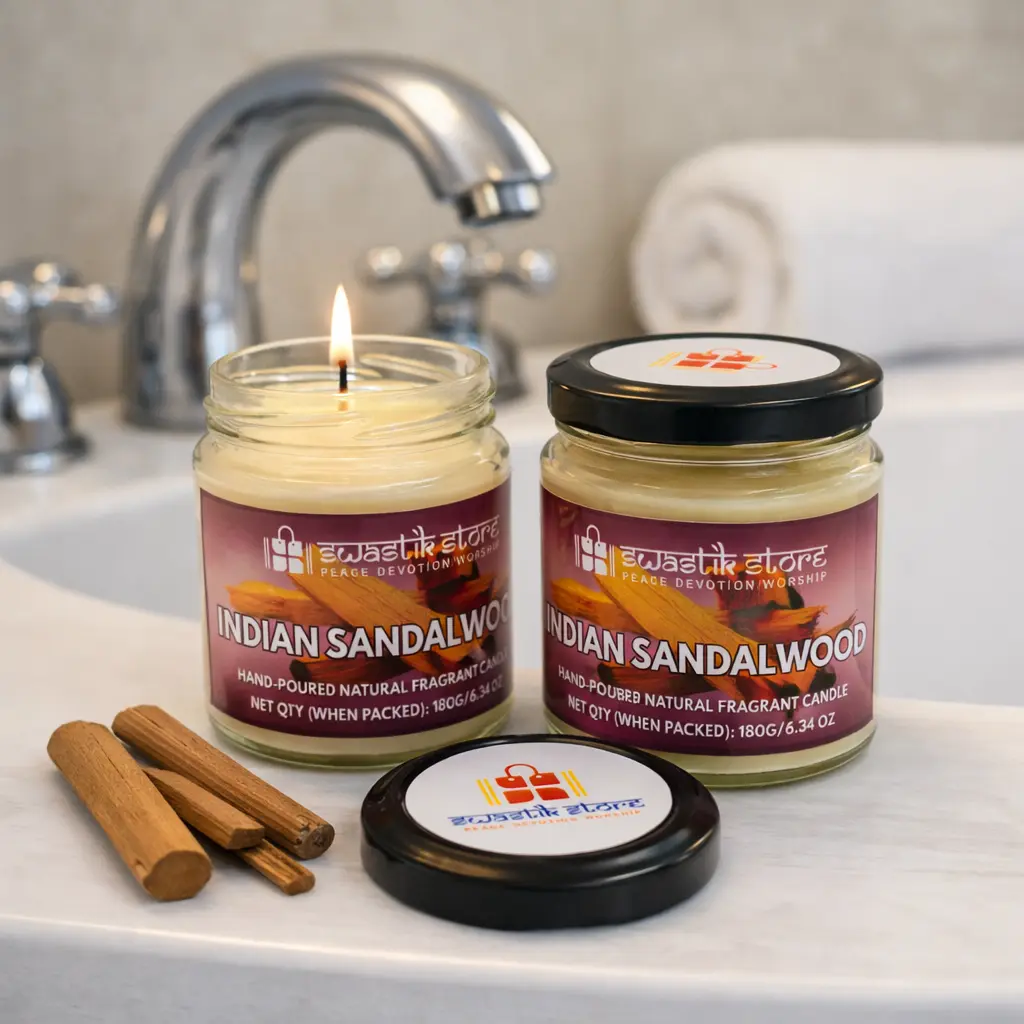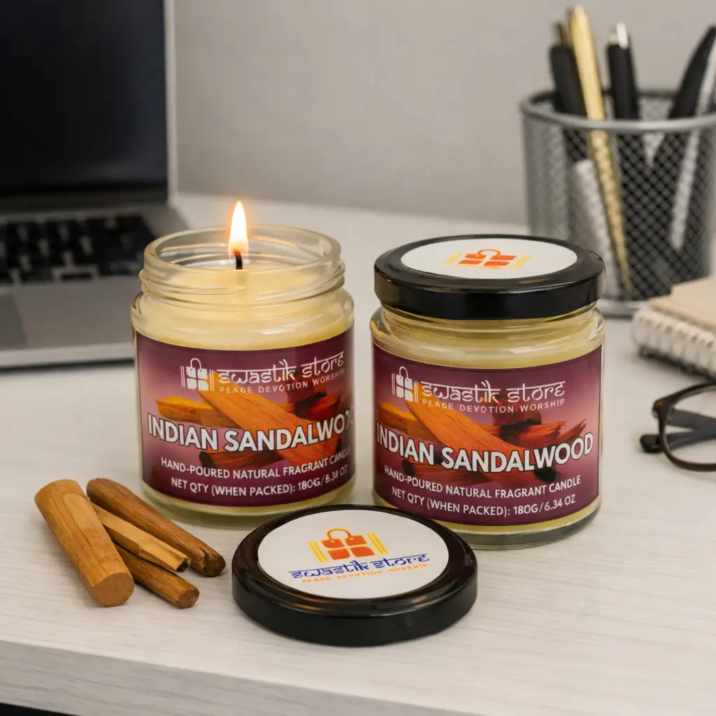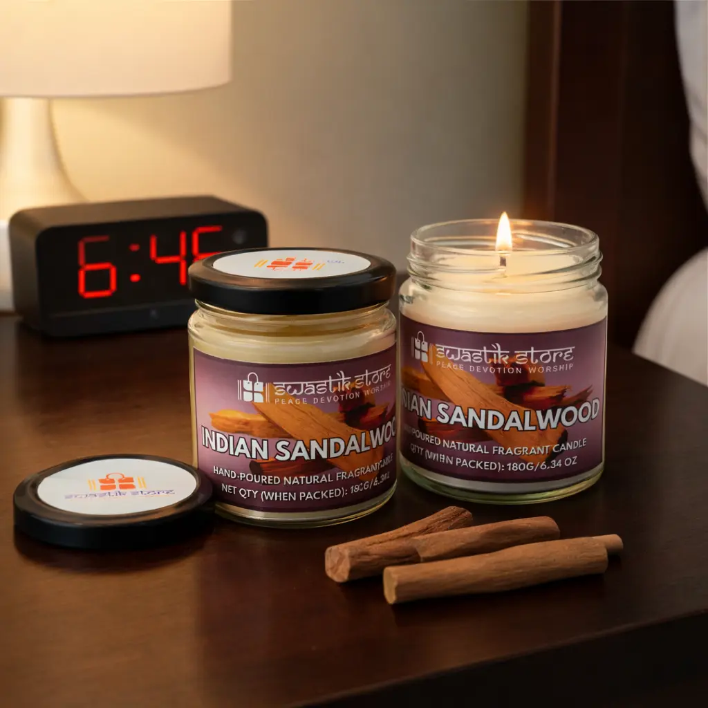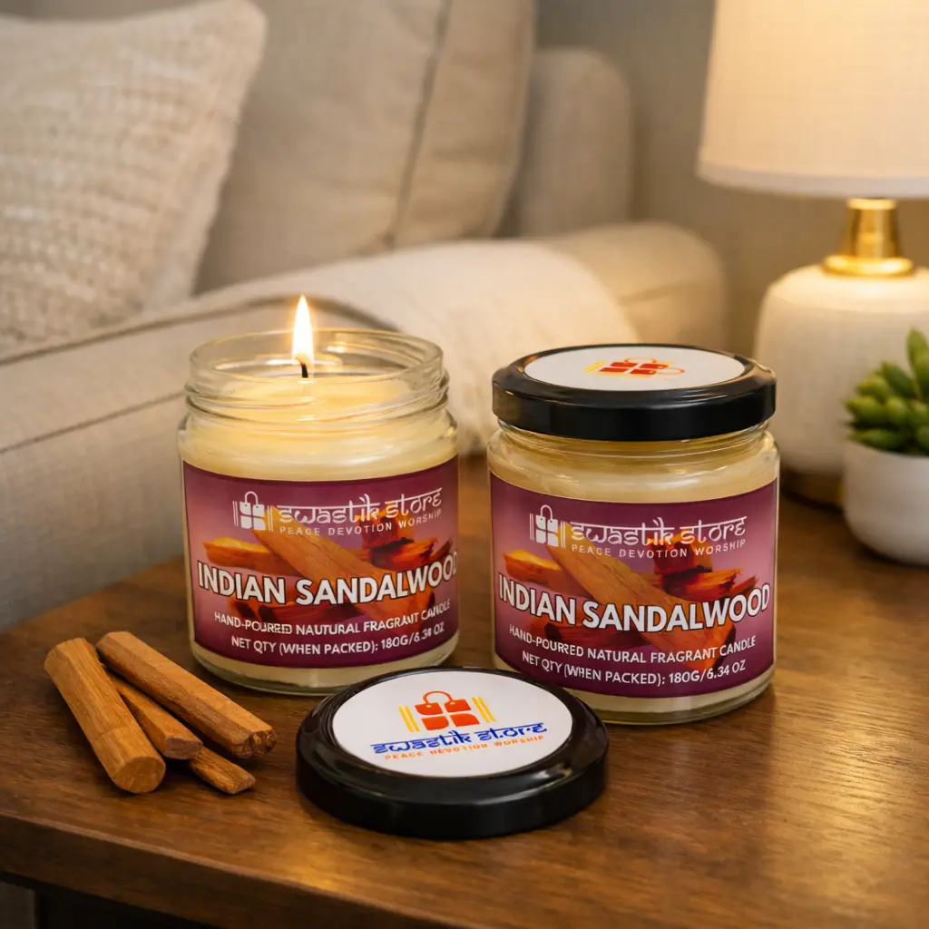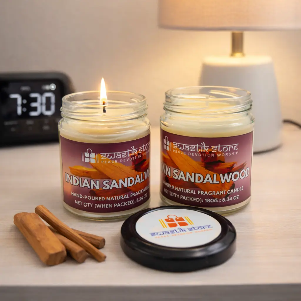 - Swastik StoreIndian Sandalwood Scented Candle – 55-Hour Smoke-Free Burn